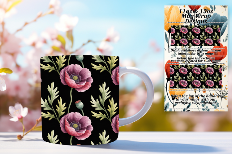 Charming 11oz Mug Wrap Png Artwork , Flowers