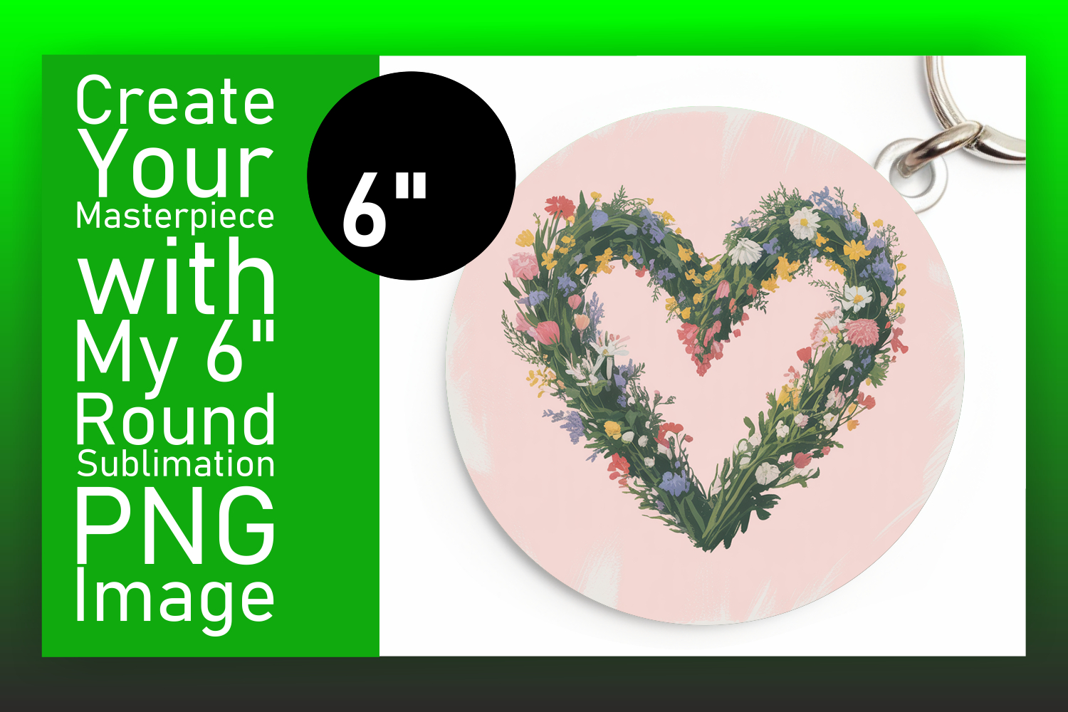 Creative Circle PNG Keychain Artwork , Flowers Heart example image 1