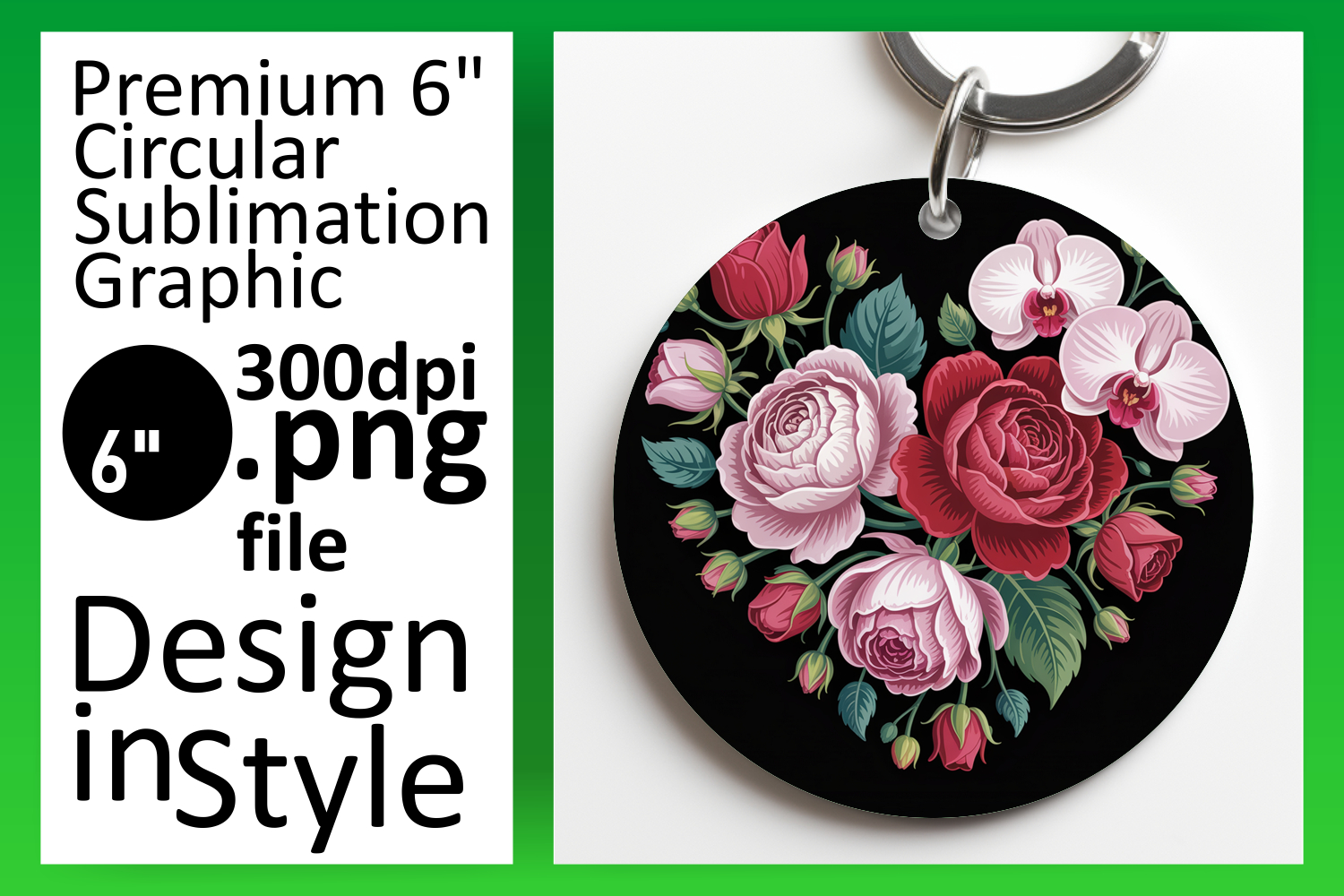 Whimsical Round Design Keychain PNG , Flowers Heart