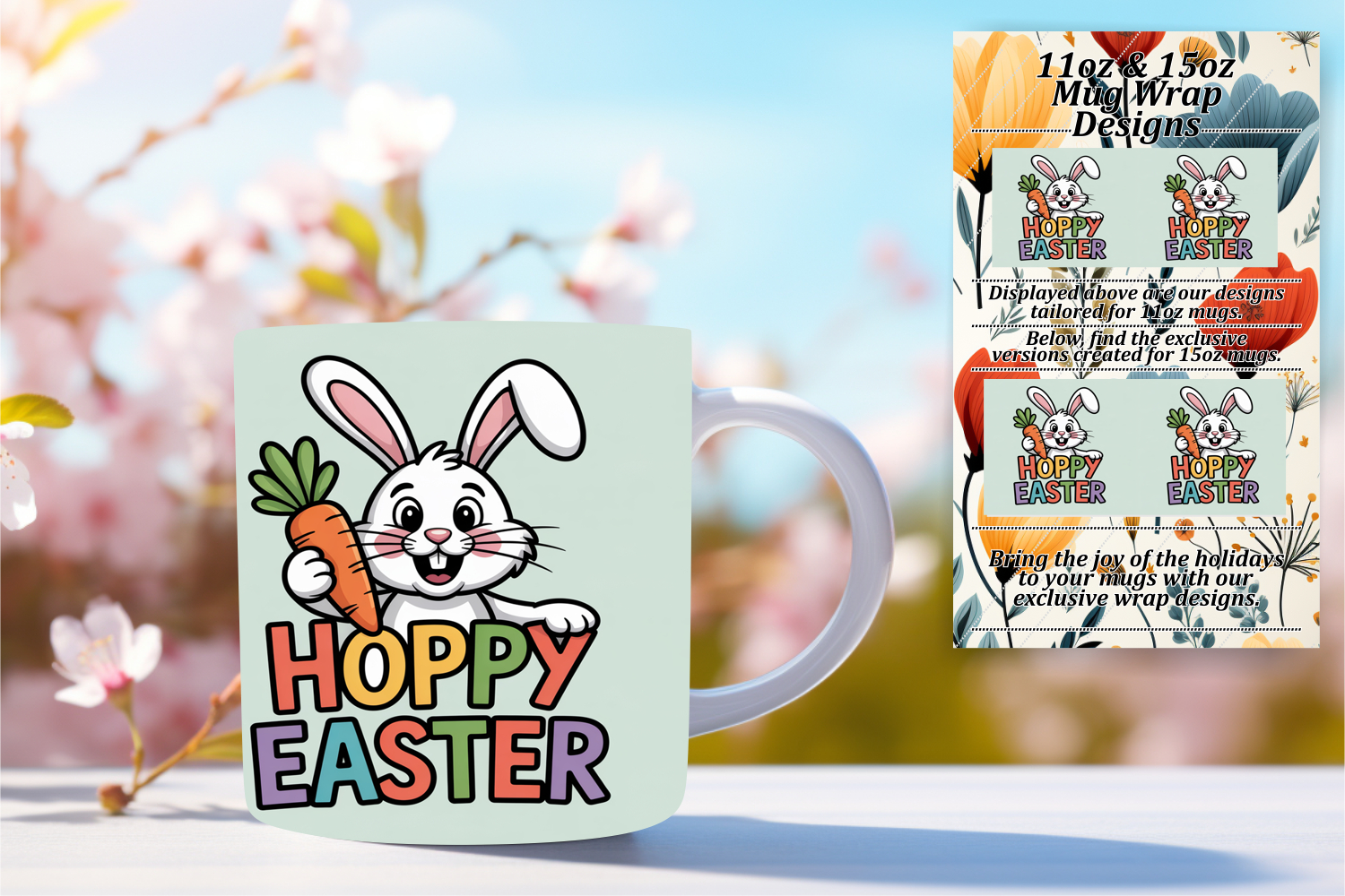 Beautiful 15oz Mug Wrap Png Design , Easter Bunny