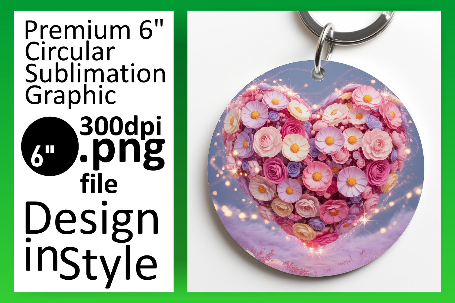 Similar Design Products to Vibrant Round Design Keychain Artwork , Flowers Heart