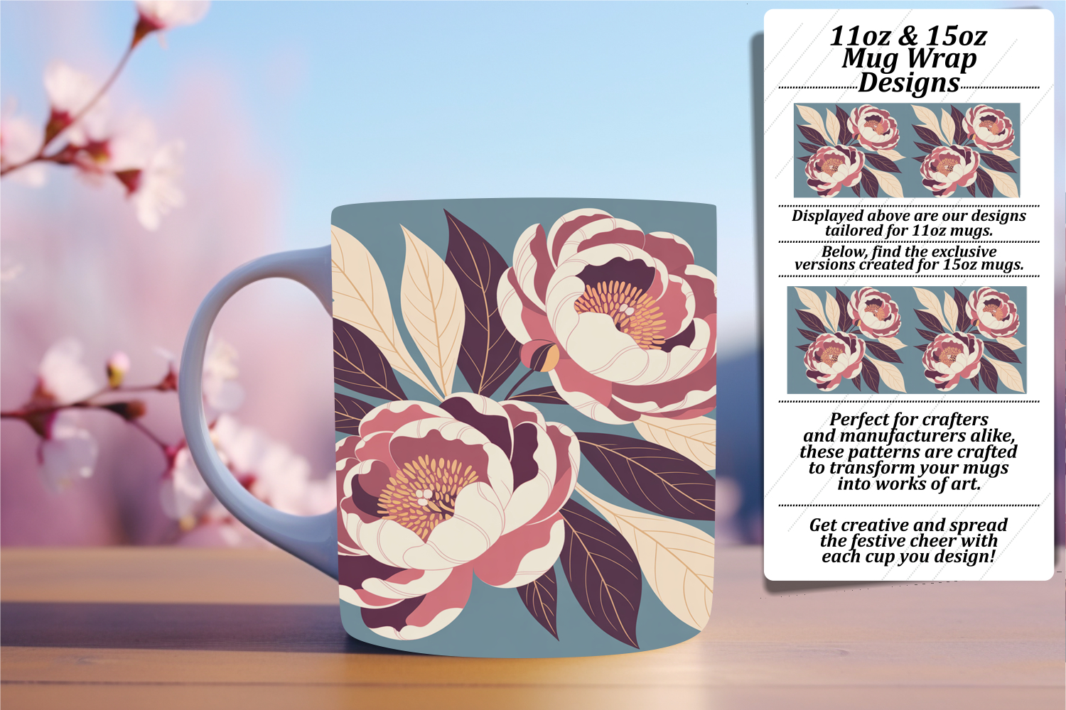 DYNAMIC 11oz Mug Wrap PNG Artwork , Flowers