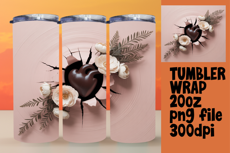 Sublimation Excellence for 20oz Tumbler , 3D Heart example image 1