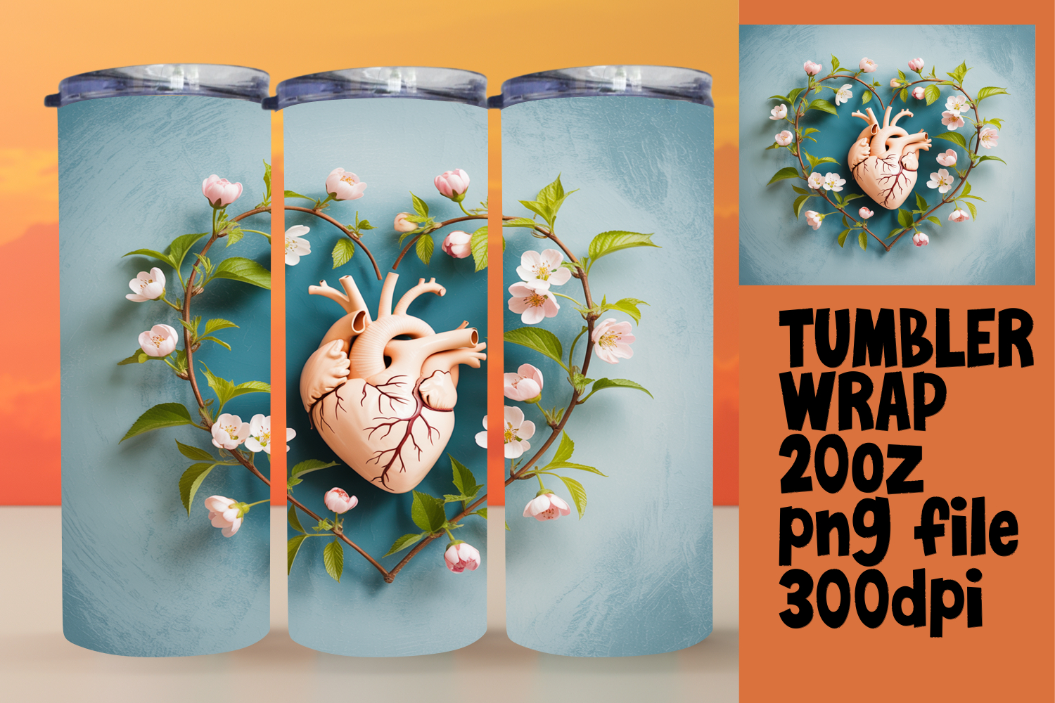 20oz Tumbler Template for Personal Use , 3D Heart example image 1