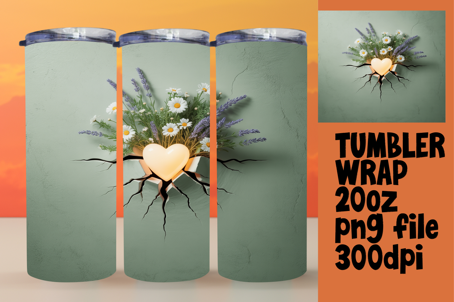 CUSTOMIZED 20oz Tumbler Wrap Design , 3D Heart example image 1