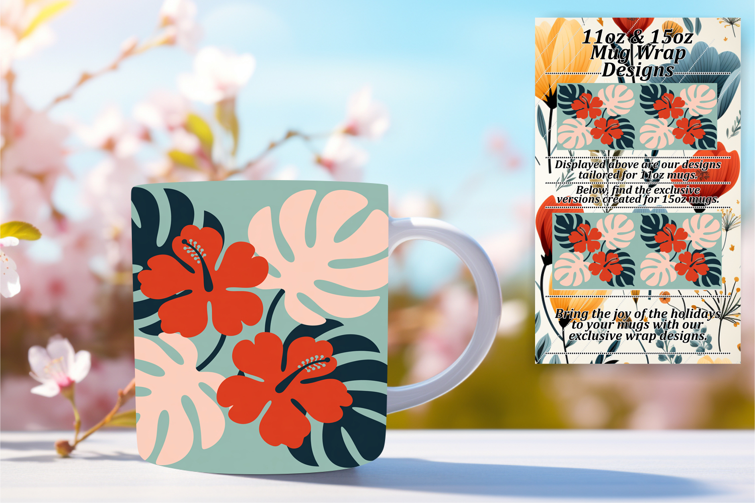 Trendy 11oz Mug Wrap Png Artwork , Flowers