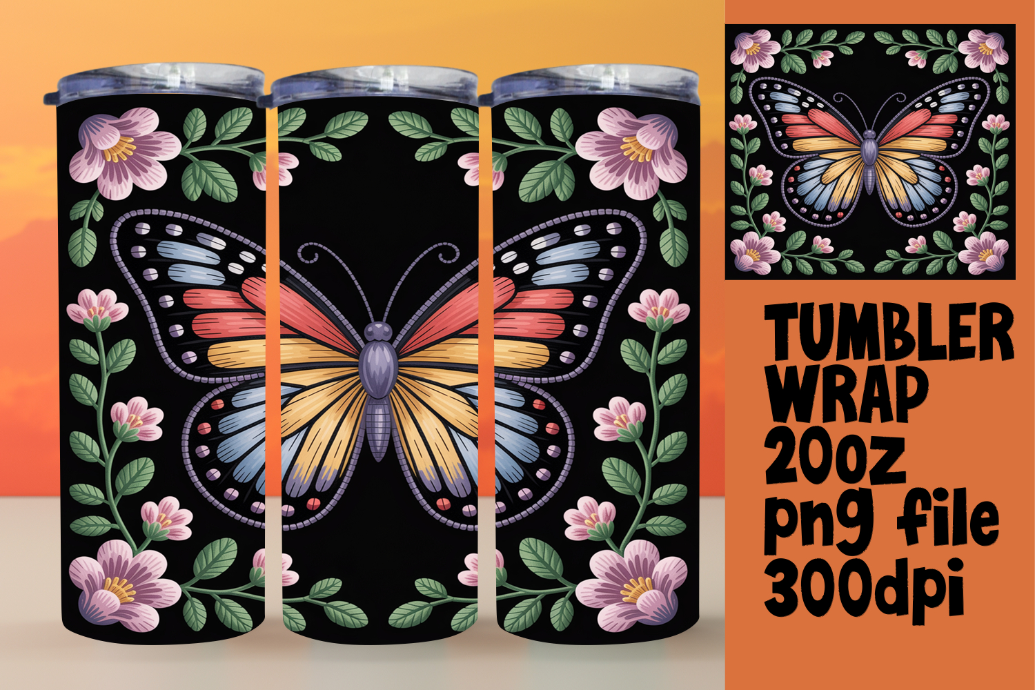 SLEEK PNG Tumbler Design 20oz , Butterfly example image 1