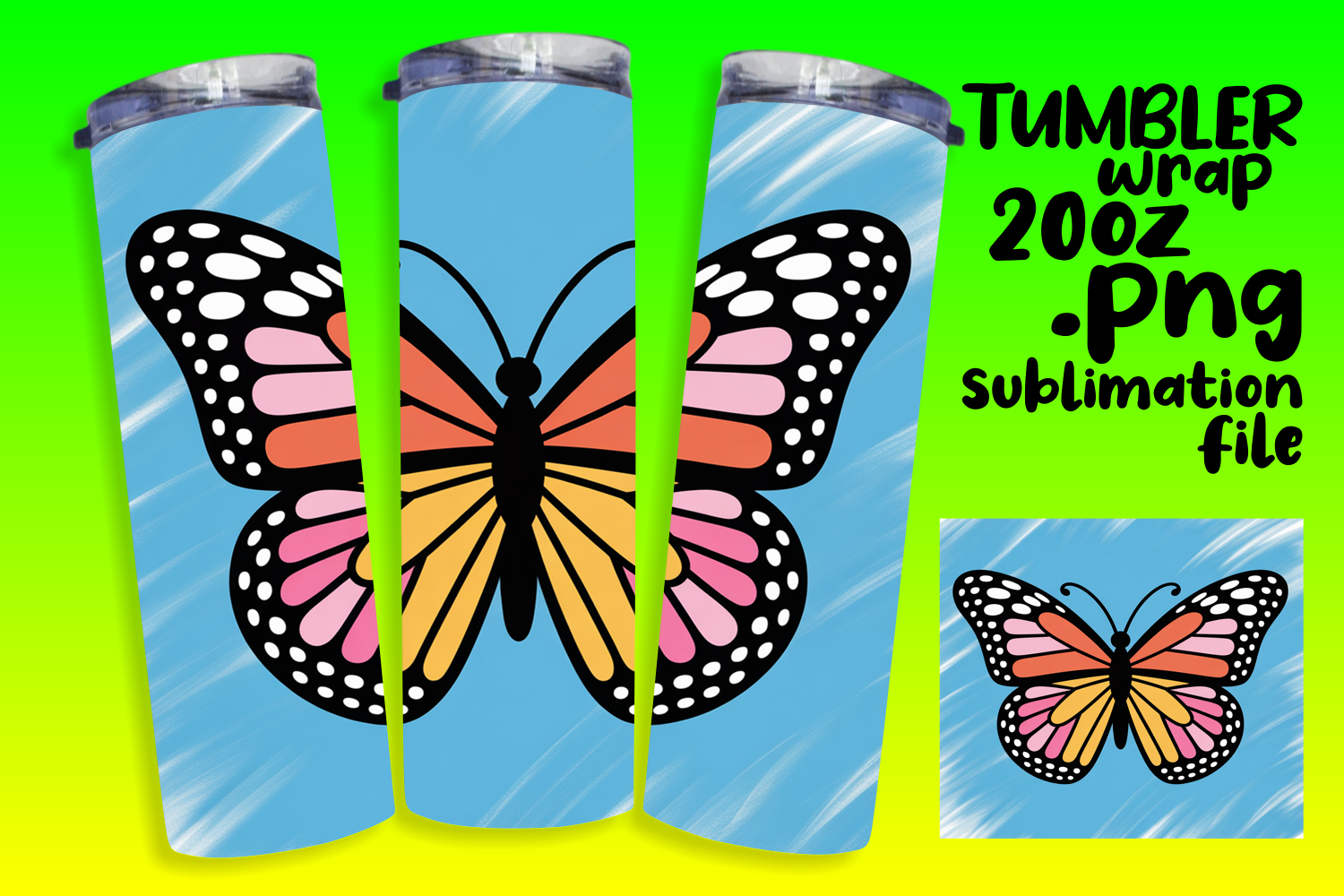 20oz Tumbler Sublimation PNG , Butterfly