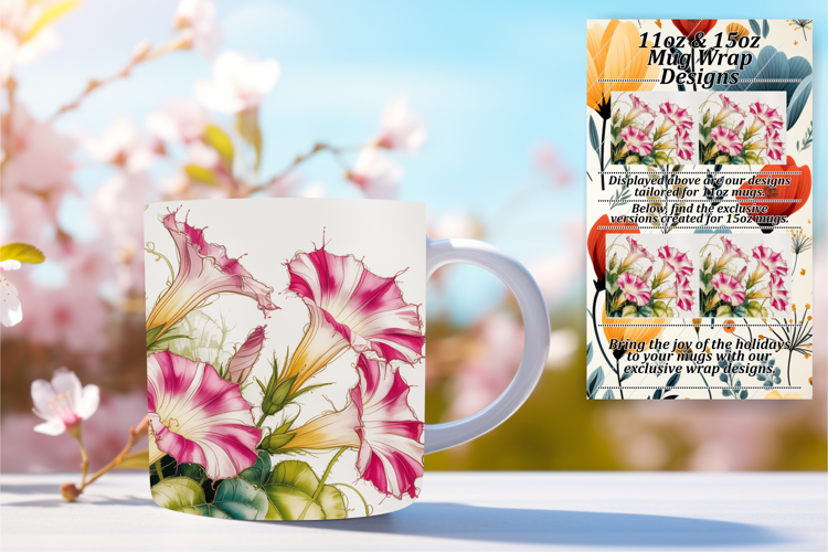 Enchanting 15oz Mug Wrap Png Template , Flowers