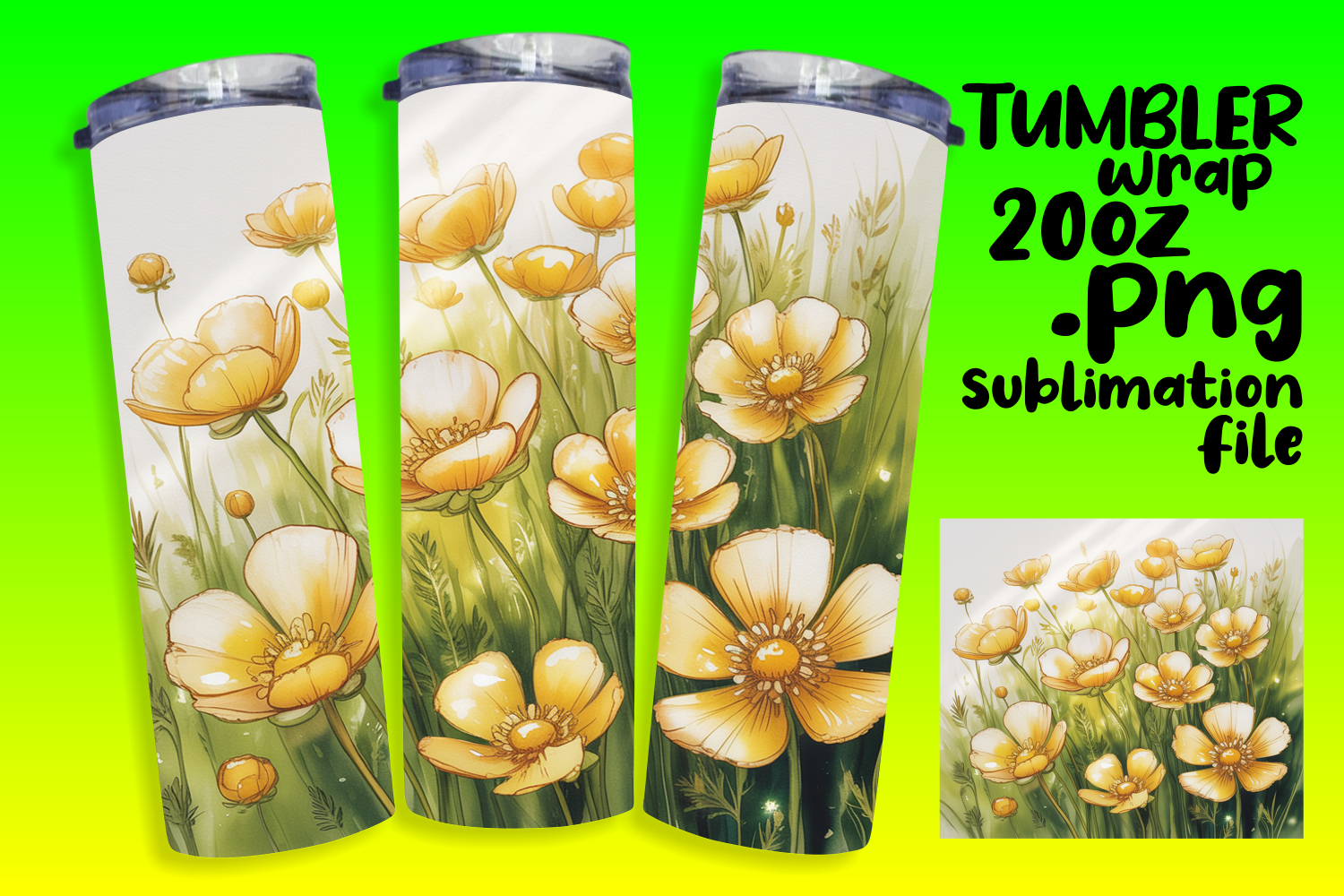 20oz Tumbler Design for Sublimation , Flowers