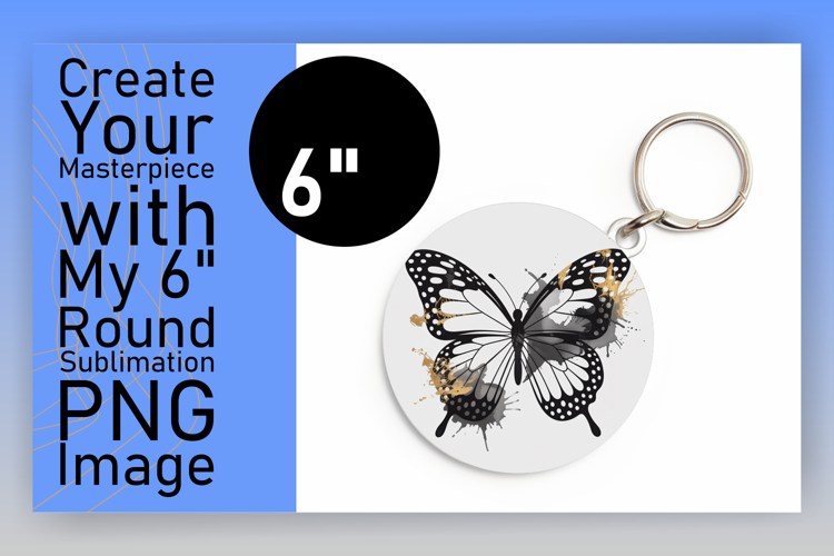 Charming Keychain Round Design PNG , Butterfly example image 1