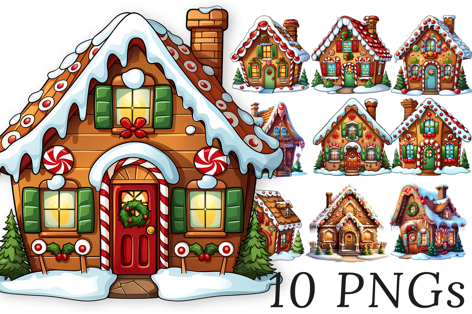 🎨 10 Cute Gingerbread House Transparent PNGs – Perfect for Sublimation, DIY, Stickers & More