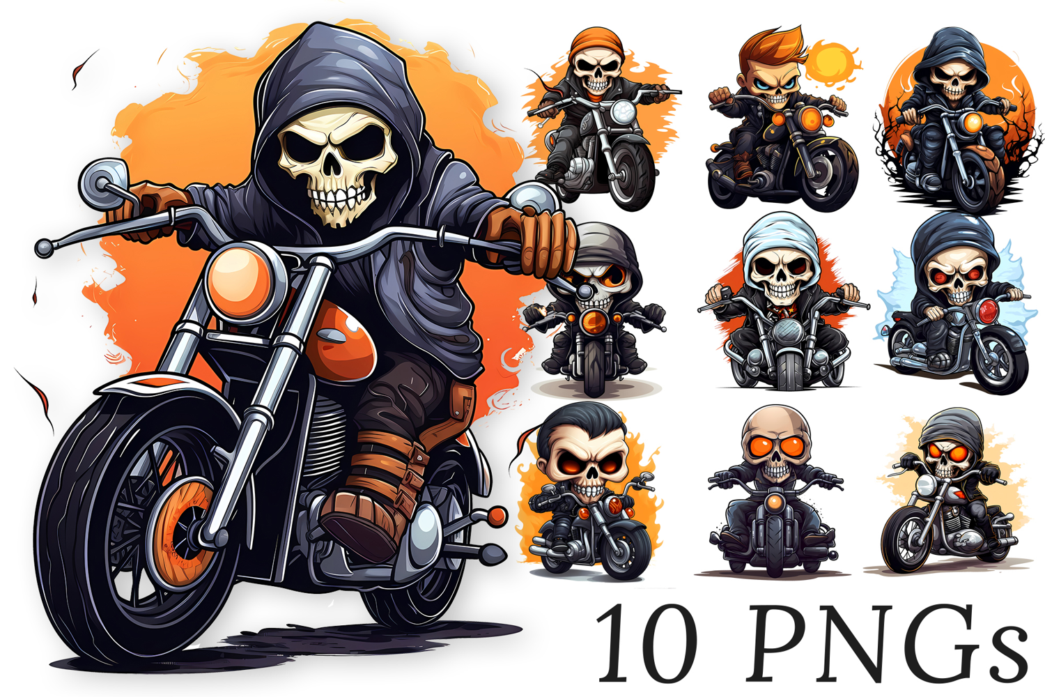 🎨 10 Skeleton Biker Transparent PNGs – Perfect for Sublimation, DIY, Stickers & More
