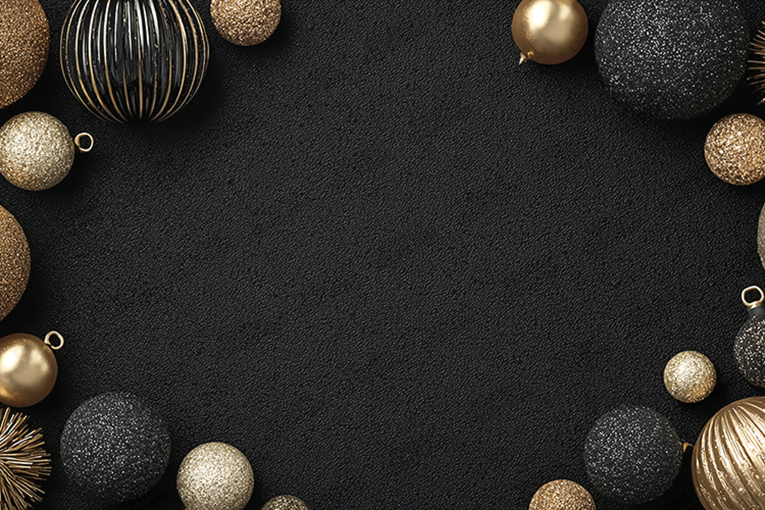 A sophisticated black and gold Christmas ornaments border with a luxurious festive design. Perfect for holiday crafts, digital papers, invitations, and seasonal design projects. Ideal for card making, scrapbooking, sublimation printing, and holiday artwork, this elegant background brings warmth, style, and a touch of luxury to any creative project.