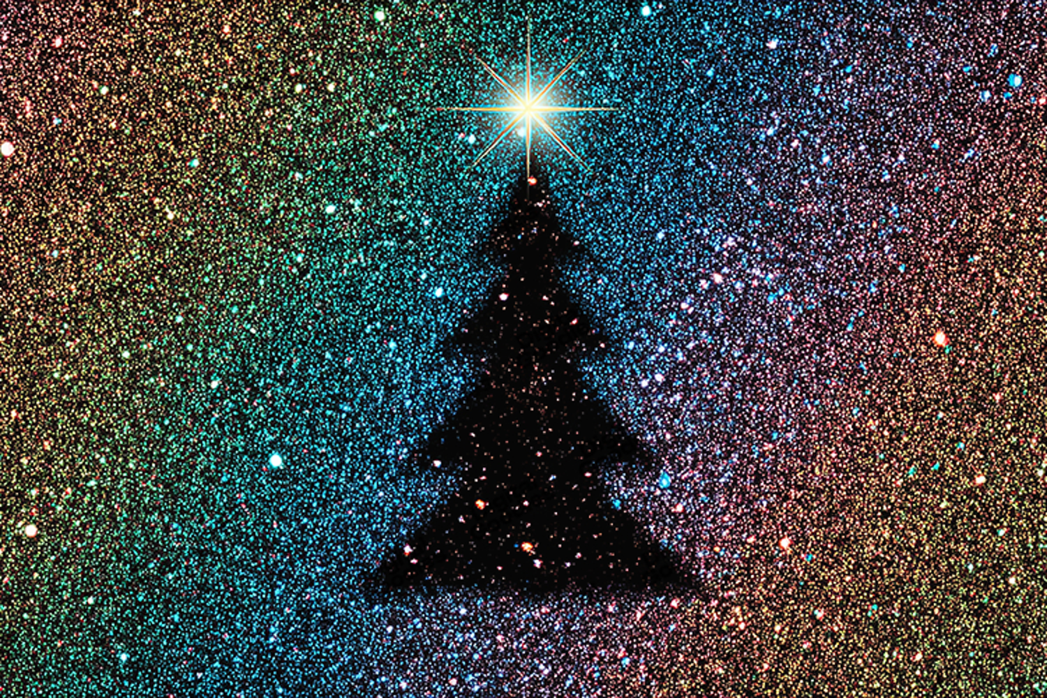 Elevate your festive projects with this dazzling, high-resolution digital background. Featuring a silhouette of a classic Christmas tree set against a vibrant, multi-colored starry night made of fine glitter texture, this JPG file is perfect for all your holiday creative needs.