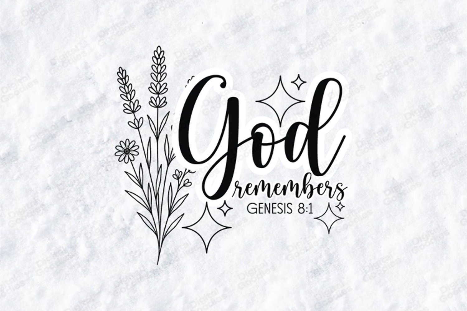 Beautiful "God Remembers" floral quote design featuring the Bible verse Genesis 8:1. Perfect for Christian-themed projects like T-shirts, wall art, greeting cards, and more. This high-quality SVG design brings a message of remembrance and hope. Ideal for sublimation, scrapbooking, and crafting.