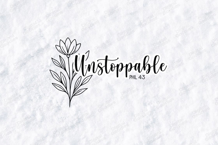 Beautiful "Unstoppable" floral quote design featuring the Bible verse Philippians 4:13. Perfect for Christian-themed projects like T-shirts, wall art, greeting cards, and more. This high-quality SVG design carries a message of strength and perseverance. Ideal for sublimation, scrapbooking, and crafting.