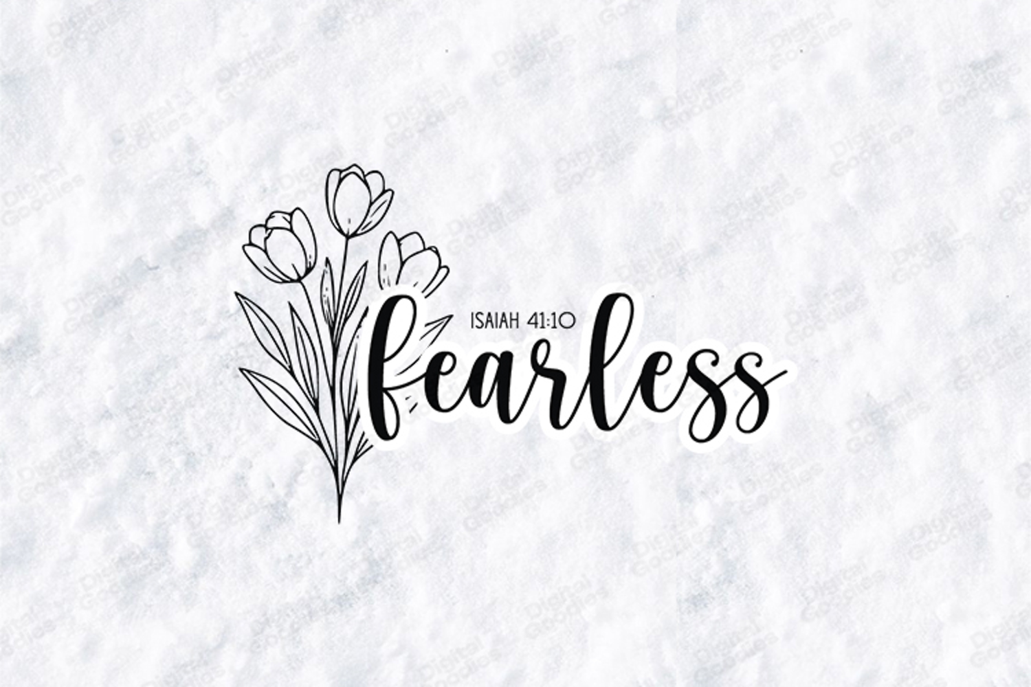 Beautiful "Fearless" floral quote design featuring the Bible verse Isaiah 41:10. Perfect for Christian-themed projects like T-shirts, wall art, greeting cards, and more. This high-quality SVG design conveys a message of courage and strength. Ideal for sublimation, scrapbooking, and crafting.