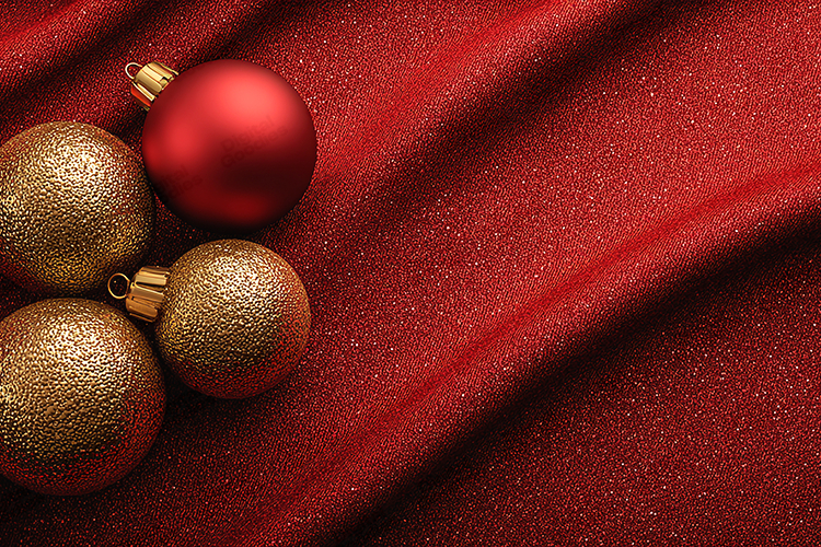 "Red & Gold Christmas Ornaments Glitter Background Texture"
