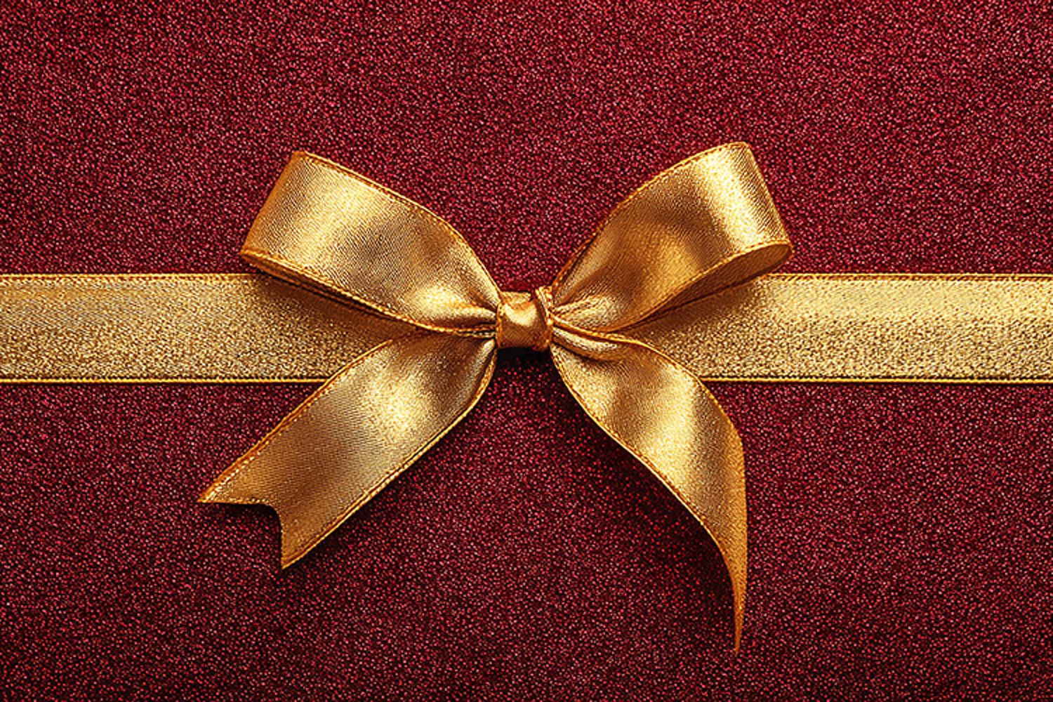 "Luxurious Gold Bow on Red Sparkle - Festive Gift Background