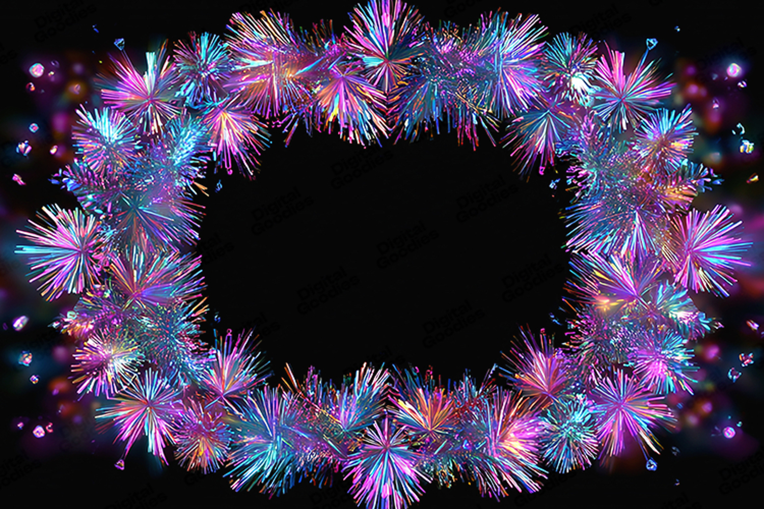 "Neon Fireworks Burst Wreath Pink Blue Abstract Frame PNG" example image 1