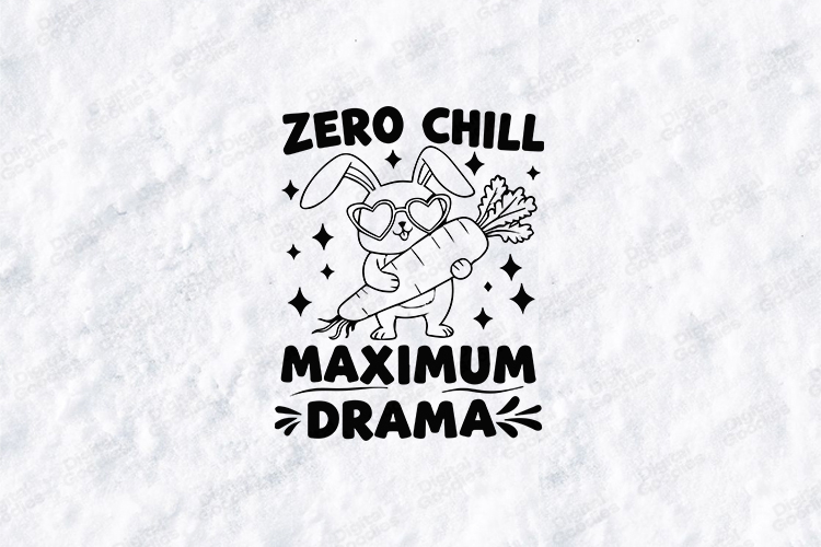 Funny bunny design with zero chill maximum drama quote. Perfect for T shirts, mugs, kids outfits and Cricut crafts. Includes SVG, PNG and JPG high resolution files. Great for vinyl, printing, sublimation and DIY projects.