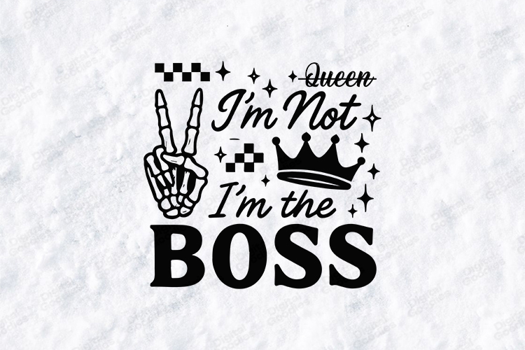 I’m Not I’m The Boss design with crown, peace sign skeleton hand and sparkle elements. Perfect for T shirts, mugs, tumblers and Cricut projects. Includes SVG, PNG and JPG high resolution files. Great for vinyl, sublimation, printing and DIY crafts.