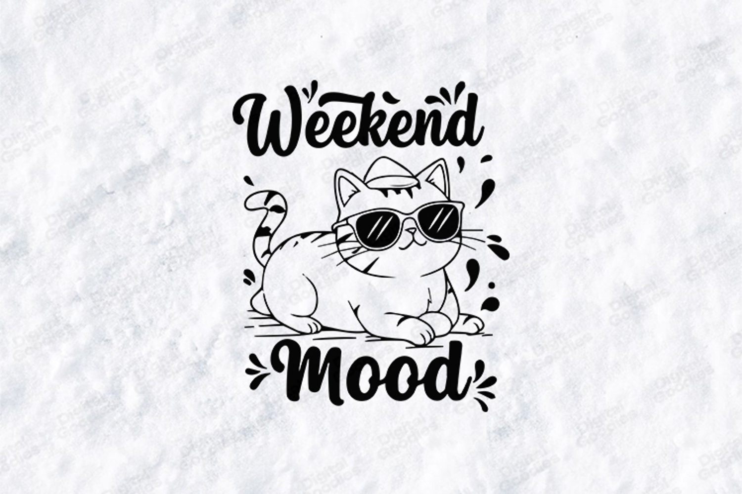 Weekend Mood Cat SVG PNG JPG Cute Funny Kitty Shirt Art example image 1