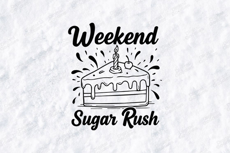 Weekend Sugar Rush cake design with candle and icing details. Perfect for T shirts, mugs, tumblers and Cricut crafts. Includes SVG, PNG and JPG high resolution files. Great for printing, vinyl, sublimation and DIY projects.