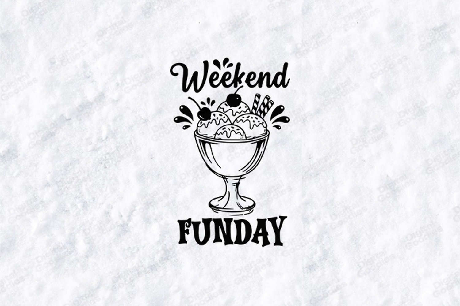 Weekend Funday themed ice cream dessert graphic design for shirts, mugs and crafting projects. Fun and cute artwork for printing and DIY decoration. Includes SVG, PNG and JPG files in high resolution for clean and quality use.