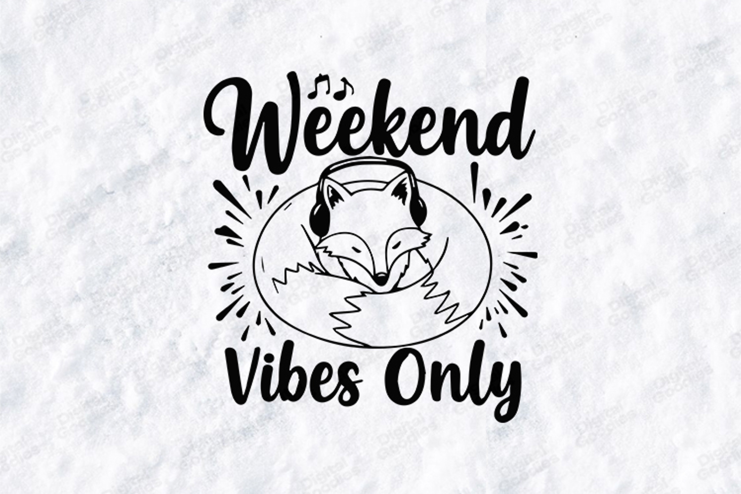 Weekend Vibes Only fox design with cute headphones artwork. Perfect for shirts, mugs, stickers and DIY projects. Includes high-resolution SVG, PNG and JPG files for clean and crisp crafting use.