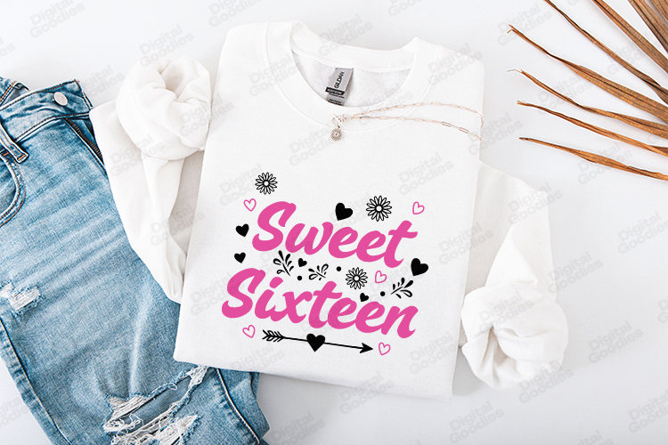 Sweet Sixteen Birthday SVG for T-Shirt and Craft Projects