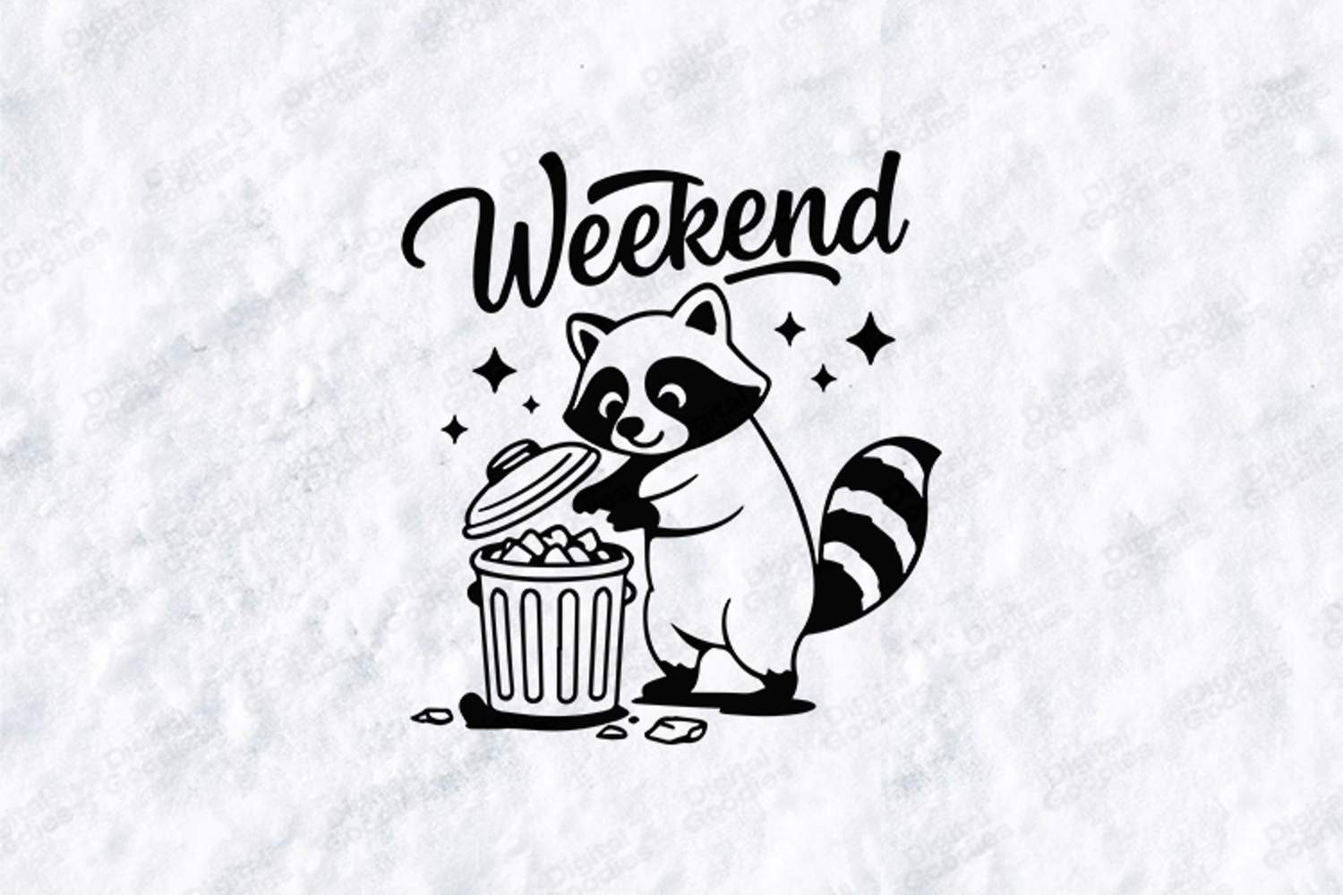 Cute and funny Weekend raccoon design perfect for shirts, mugs, hoodies, stickers and print projects. This adorable trash panda art is ideal for weekend lovers, animal themed gifts and crafting. High quality graphics suitable for Cricut, Silhouette and print on demand products. Includes bold clean lines and professional finish. Great for apparel and accessories