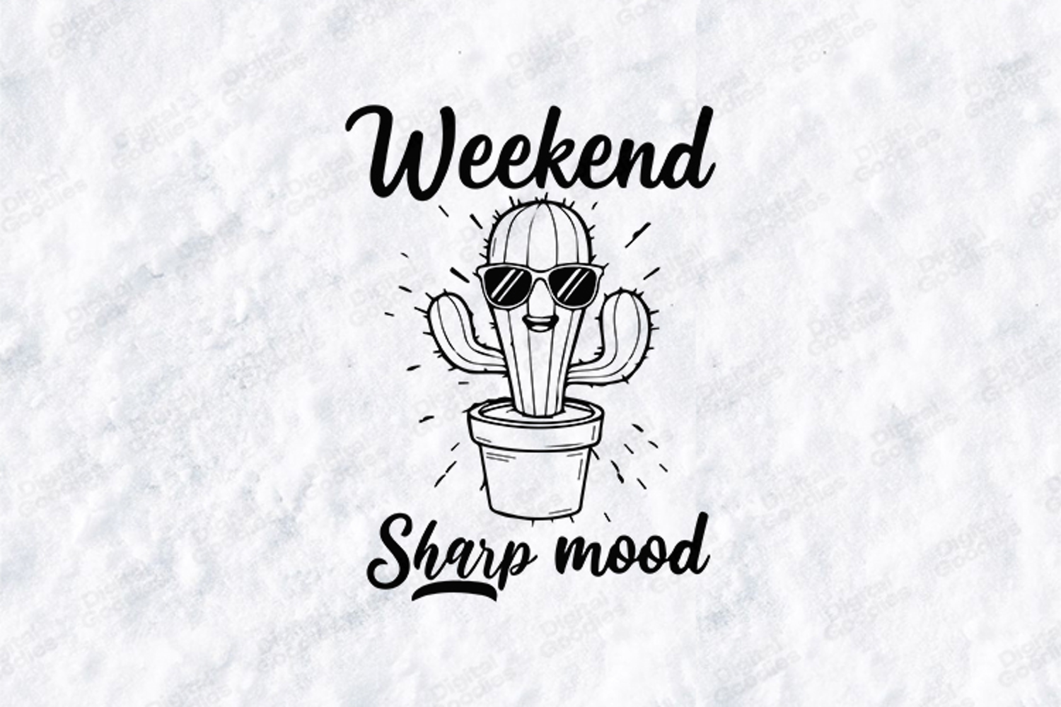 Weekend Sharp Mood Cactus Tshirt Design With Cute Plant Illustration And Bold Lettering. Perfect For Printing, Apparel, Vinyl, Mugs And Crafting Projects. Ideal For Weekend Outfits And Summer Fashion.