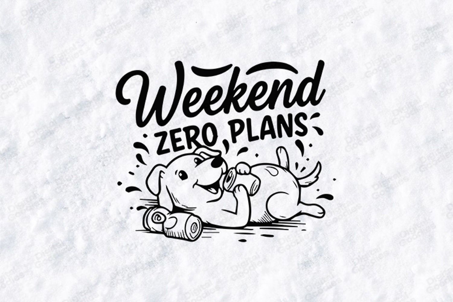 Weekend Zero Plans Dog Tshirt Design With Cute Lazy Illustration And Bold Lettering. Perfect For Printing, Apparel, Vinyl, Mugs And Crafting Projects. Ideal For Weekend Outfits And Pet Lover Fashion.