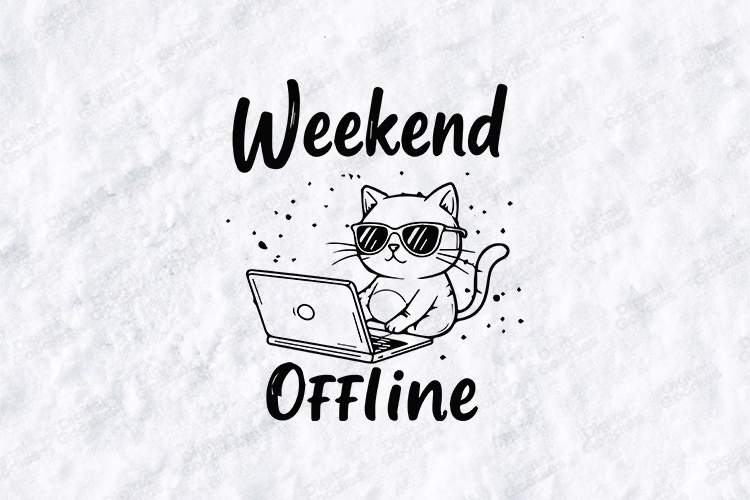 Weekend Offline Cat Tshirt Design With Cute Laptop Illustration And Bold Lettering. Perfect For Printing, Apparel, Vinyl, Mugs And Crafting Projects. Ideal For Weekend Outfits And Cute Fashion.