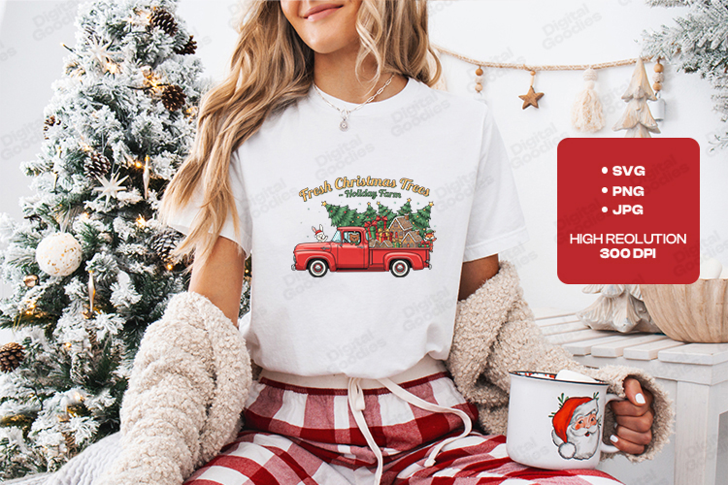 This charming Fresh Christmas Trees design features a vintage red truck with holiday greenery and festive accents. Perfect for Christmas shirts, mugs, seasonal apparel and print-on-demand products. Great for family outfits, gift ideas and DIY crafting. Includes SVG, PNG and JPG files in high resolution 300 DPI for clean and professional printing. Ideal for sublimation, decals, stickers and winter projects.