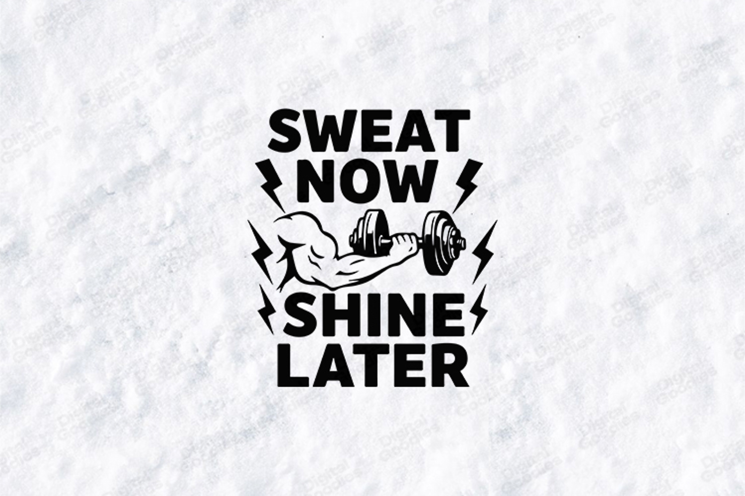 Push your limits with this bold “Sweat Now Shine Later” fitness design featuring a muscular arm lifting a dumbbell surrounded by lightning energy elements. Perfect for gym lovers, workout enthusiasts, and motivational apparel. Ideal for T-shirts, hoodies, posters, gym bags, mugs, and digital crafting projects.