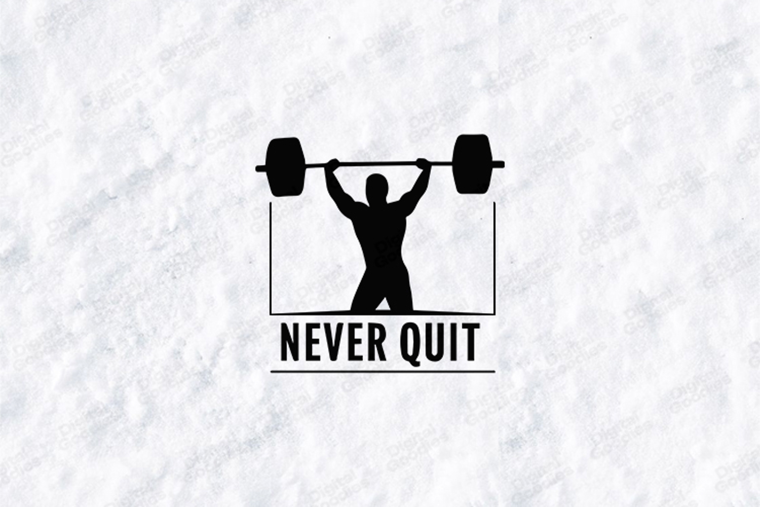 A bold “Never Quit” fitness design featuring a weightlifter holding a heavy barbell overhead—perfect for motivating athletes and gym lovers. Clean, strong artwork ideal for apparel and gym merchandise.