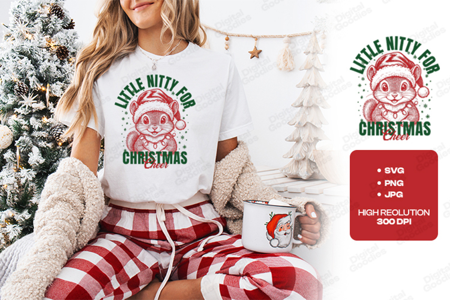 Little Nutty for Christmas Cheer Cute T-Shirt Design SVG example image 1