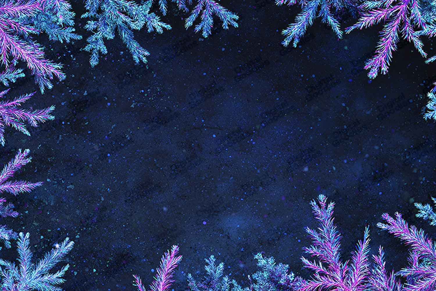 A stunning winter-themed background featuring glowing frosted pine branches in neon blue and purple tones on a dark textured backdrop. Perfect for Christmas, holiday cards, invitations, posters, crafts, sublimation, and digital design projects.