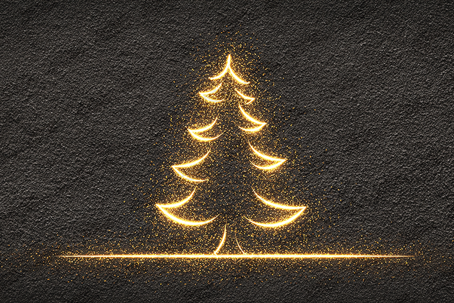 A beautiful glowing Christmas tree drawn with golden light lines over a textured dark background, enhanced with sparkling particles for a festive touch. Perfect for holiday cards, seasonal invitations, winter posters, scrapbooking, digital artwork, and elegant Christmas designs. This refined and luminous tree illustration adds warmth, sophistication, and holiday magic to any creative project.