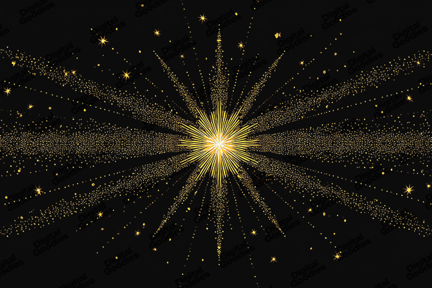A radiant golden starburst design featuring glowing light rays, shimmering particles, and sparkling accents on a dark backdrop. Perfect for festive invitations, holiday graphics, luxury decor, posters, scrapbooking, digital artwork, and elegant creative projects. This luminous starburst adds brilliance, warmth, and a premium decorative touch to any design.