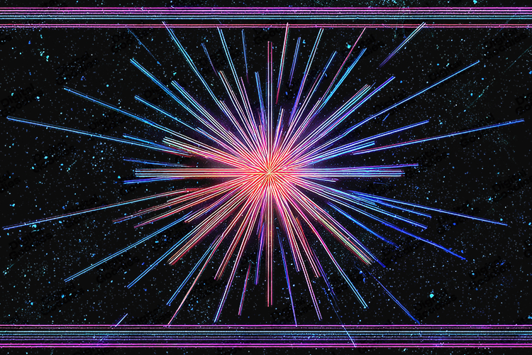 A vibrant digital background featuring a glowing neon fireworks burst with colorful light rays radiating from the center. Set against a dark starry backdrop with elegant horizontal neon lines, this design creates a dynamic and festive atmosphere perfect for New Year celebrations, party invitations, event posters, digital art projects, and modern holiday graphics. High-resolution artwork ideal for professional creative use.