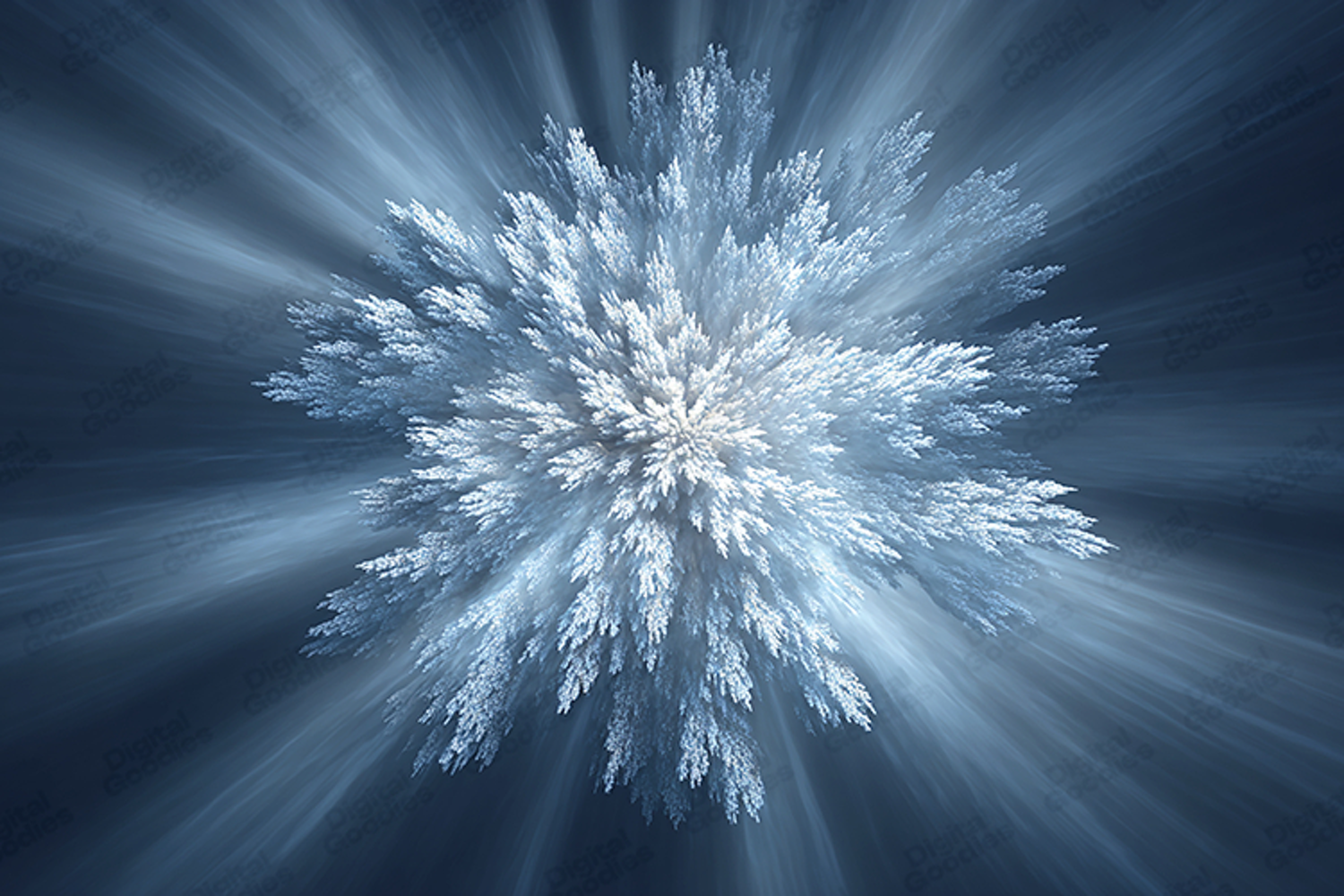 Modern Light Rays Digital Snowflake Fractal Art Cool Background Winter Blue White Frost Cold Aesthetic Ice Starburst Abstract Explosion
