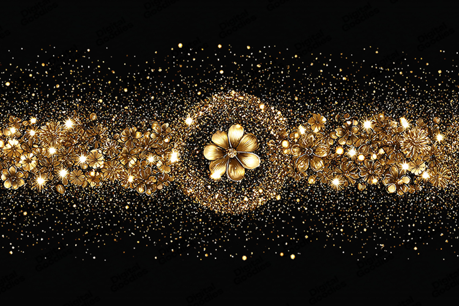 Luxury Gold Glitter Flower Border - Black Background Graphic