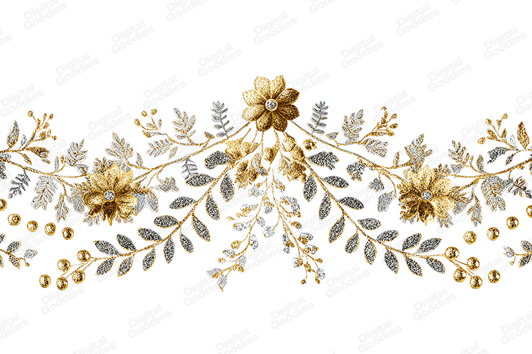 Gold and Silver Glitter Floral Garland - Elegant White Borde