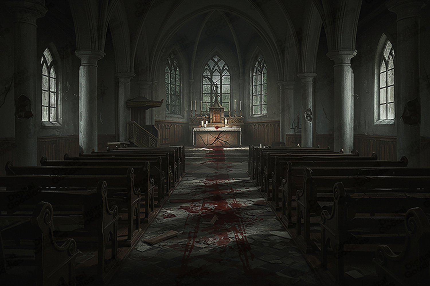 Similar Design Products to Dark Haunted Church Interior Horror Background Art