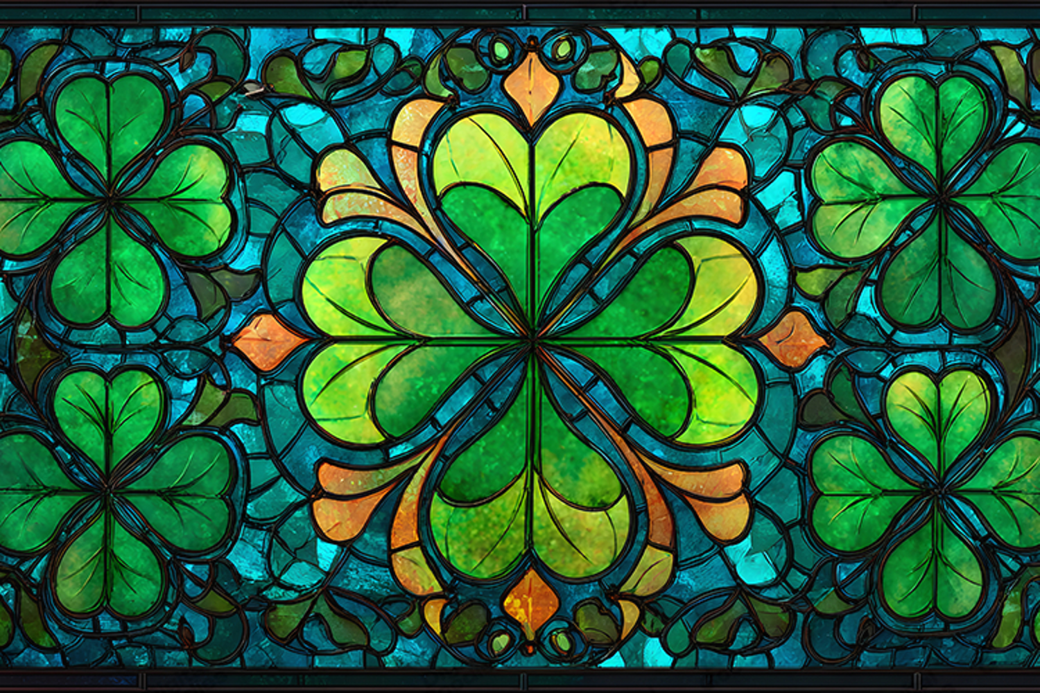 Shamrock Clover Stained Glass Ornate Background