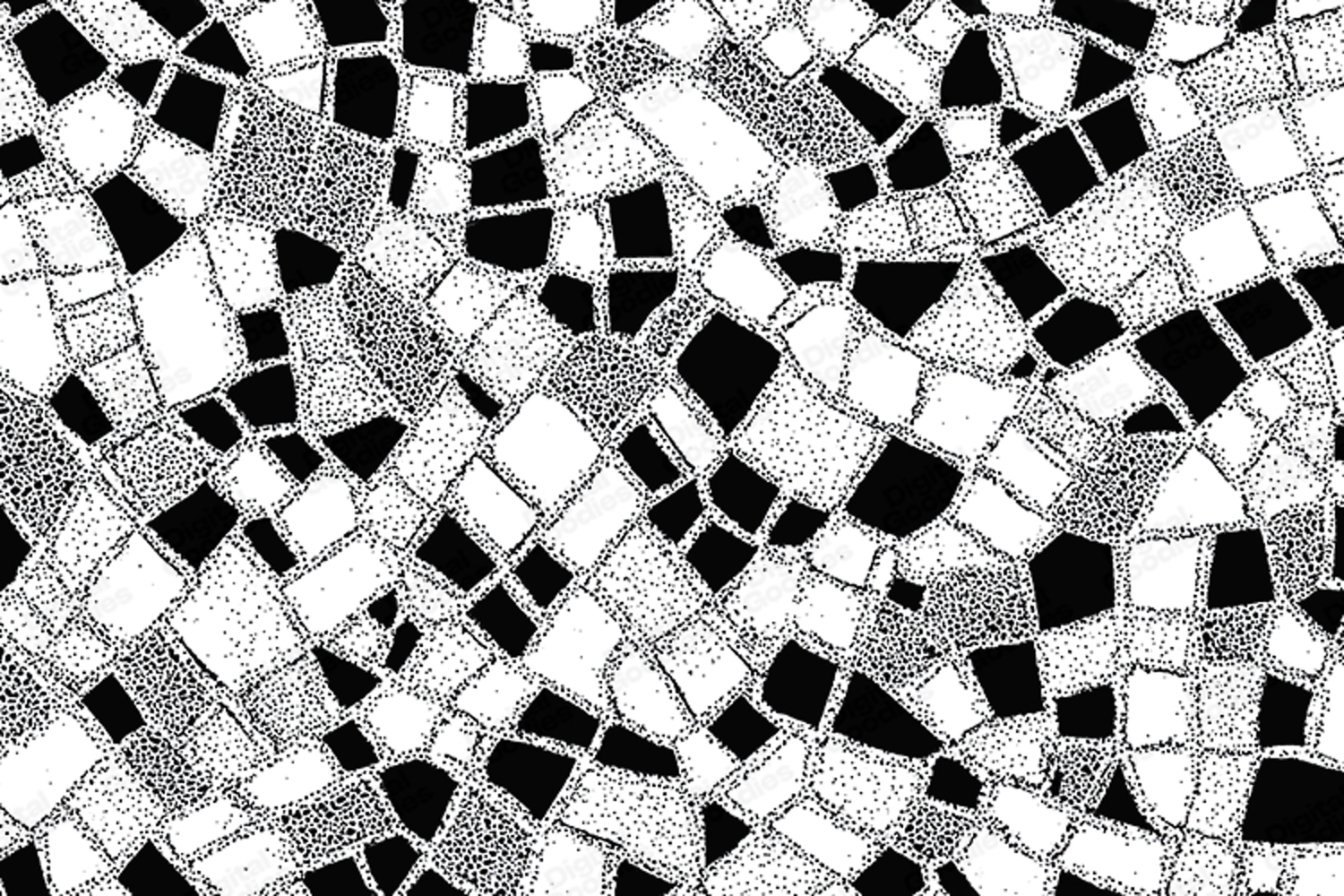 A bold abstract mosaic texture created with dotted detailing and irregular geometric shapes. This black and white pattern adds a dynamic artistic effect, ideal for posters, digital art, scrapbooking, backgrounds, overlays, and creative design projects. Perfect for adding depth and visual interest to any layout.